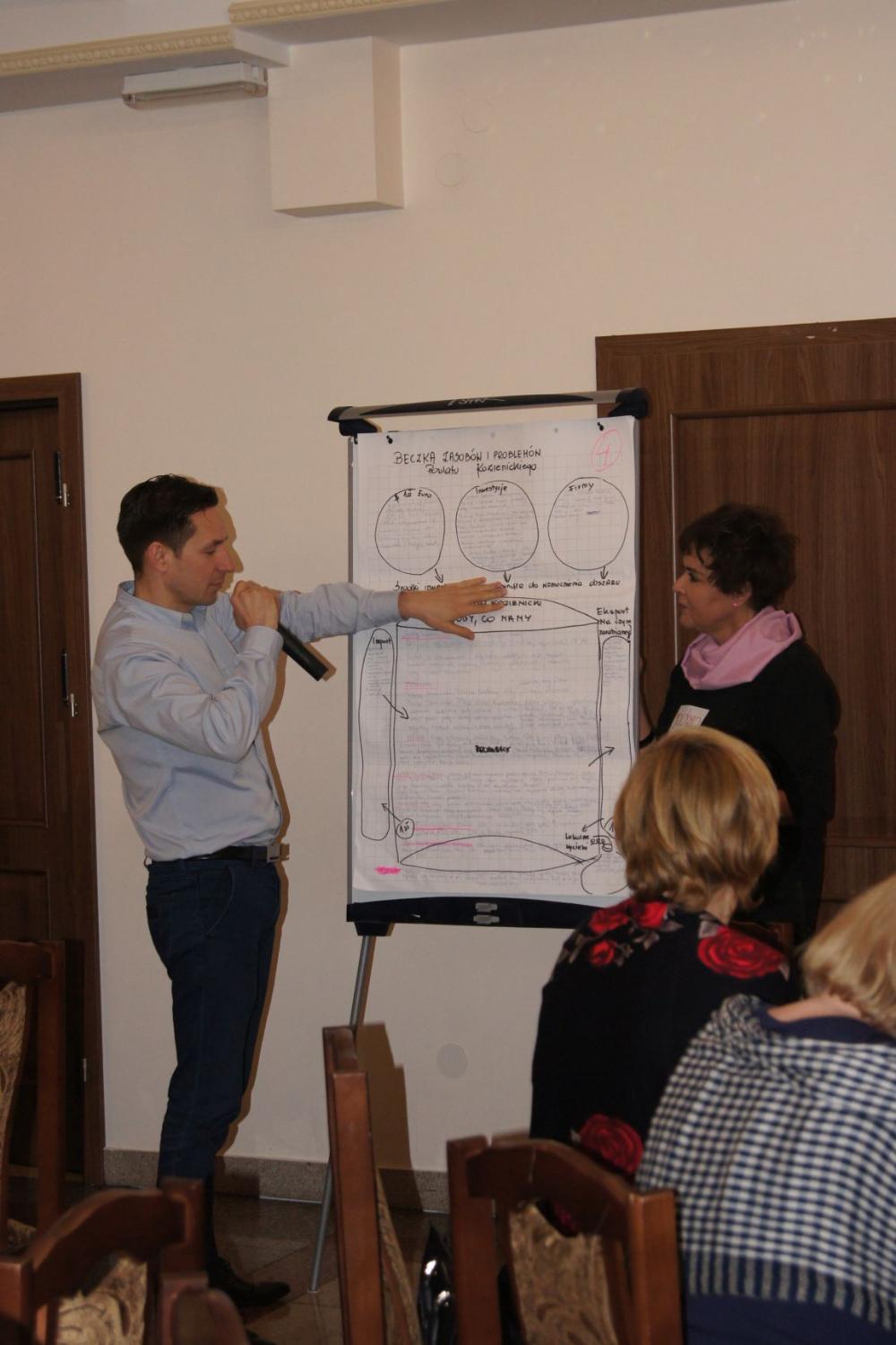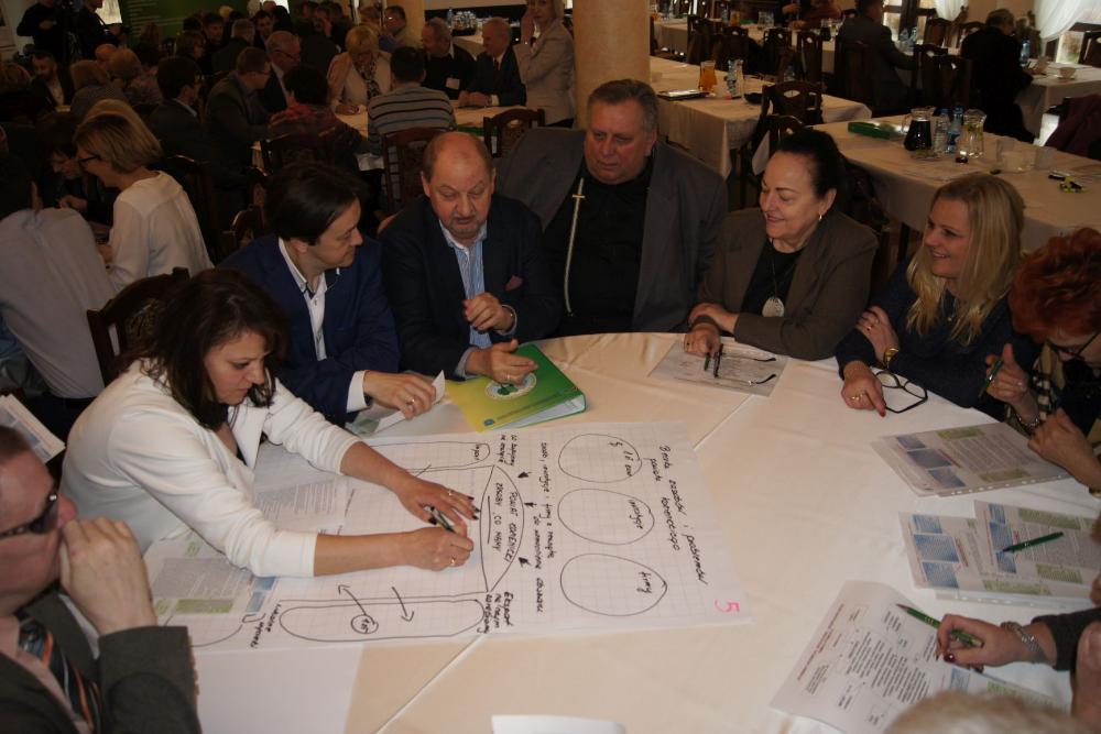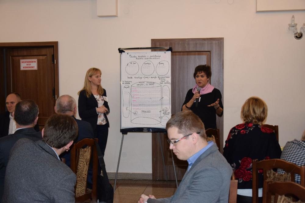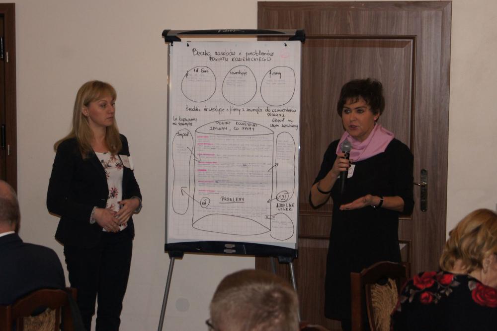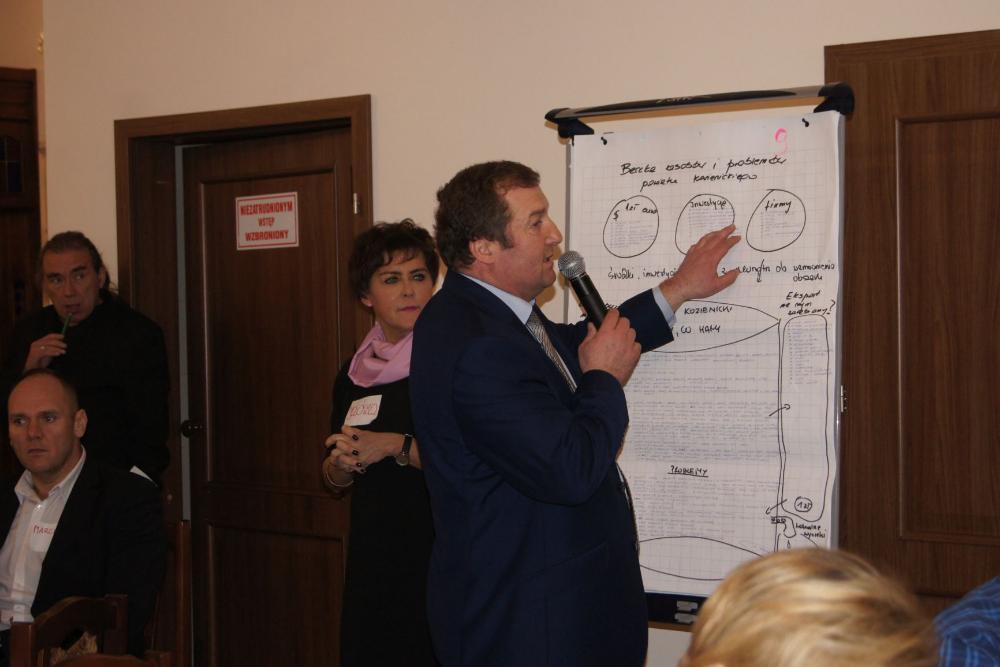 Część warsztatową konferencji poprzedziło przedstawienie przez Jadwigę Olszowską-Urban założeń oraz idei lokalnego partnerstwa w Polsce i na świecie, jak również zaprezentowała kilka przykładów partnerstwa lokalnego tworzonego i z powodzeniem realizowanego w różnych zakątkach Polski, np. w Oświęcimiu, Siemiatyczach, Łosicach czy Lwówku Śląskim. Mając tę wiedzę oraz bazując na własnych doświadczeniach i lokalnej działalności uczestnicy, podzieleni na 9 losowych grup - przystąpili do tworzenia beczek lokalnych zasobów i problemów Powiatu Kozienickiego. Praca ta miała na celu dokonanie analizy środowiska społeczno-gospodarczego powiatu kozienickiego. Należy nadmienić, że większość grup podobnie przeanalizowało potencjał powiatu, jak również wskazało problemy i braki społeczno-gospodarcze otoczenia. Istotne było również wskazywanie „wycieków" z powiatu, czyli zasobów w postaci m.in. ludzi, kapitału finansowego i pomysłów, które obecnie z różnych względów nie znajdują realizacji na terenie powiatu, a można by z powodzeniem zatrzymać na lokalnym rynku. Analiza ta ma stworzyć fundament dla kolejnych konferencji, które mają służyć wypracowaniu projektów odpowiadających potrzebom lokalnego rynku pracy. Wszyscy uczestnicy pierwszej konferencji Kozienickiego Partnerstwa Lokalnego 2018 otrzymają w najbliższym czasie podsumowanie konferencji i wspomnianej beczki, jako materiał pomocniczy do pracy podczas kolejnych spotkań.