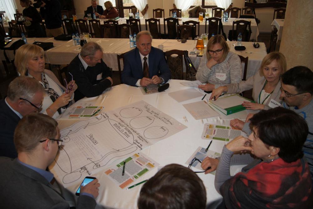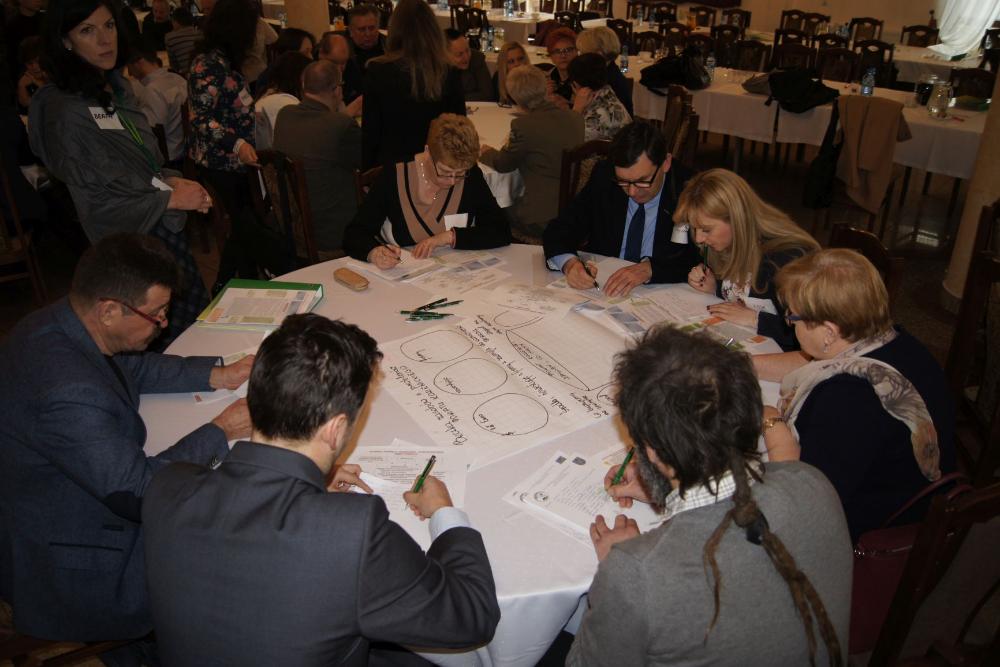 Część warsztatową konferencji poprzedziło przedstawienie przez Jadwigę Olszowską-Urban założeń oraz idei lokalnego partnerstwa w Polsce i na świecie, jak również zaprezentowała kilka przykładów partnerstwa lokalnego tworzonego i z powodzeniem realizowanego w różnych zakątkach Polski, np. w Oświęcimiu, Siemiatyczach, Łosicach czy Lwówku Śląskim. Mając tę wiedzę oraz bazując na własnych doświadczeniach i lokalnej działalności uczestnicy, podzieleni na 9 losowych grup - przystąpili do tworzenia beczek lokalnych zasobów i problemów Powiatu Kozienickiego. Praca ta miała na celu dokonanie analizy środowiska społeczno-gospodarczego powiatu kozienickiego. Należy nadmienić, że większość grup podobnie przeanalizowało potencjał powiatu, jak również wskazało problemy i braki społeczno-gospodarcze otoczenia. Istotne było również wskazywanie „wycieków" z powiatu, czyli zasobów w postaci m.in. ludzi, kapitału finansowego i pomysłów, które obecnie z różnych względów nie znajdują realizacji na terenie powiatu, a można by z powodzeniem zatrzymać na lokalnym rynku. Analiza ta ma stworzyć fundament dla kolejnych konferencji, które mają służyć wypracowaniu projektów odpowiadających potrzebom lokalnego rynku pracy. Wszyscy uczestnicy pierwszej konferencji Kozienickiego Partnerstwa Lokalnego 2018 otrzymają w najbliższym czasie podsumowanie konferencji i wspomnianej beczki, jako materiał pomocniczy do pracy podczas kolejnych spotkań.